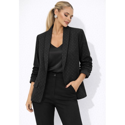 Κομψό και statement σακάκι σε μαύρη απόχρωση, διακοσμημένο με διακριτικά στρας που χαρίζουν λάμψη χωρίς υπερβολή. Διαθέτει oversize γραμμή , μήκος και μανίκια με έντονες σούρες για σύγχρονο και fashion-forward αποτέλεσμα.